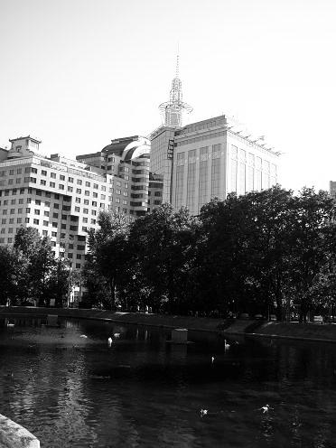 В парке плавает масса уток и лебедей. Любуетесь птицами и футуристическими видами,