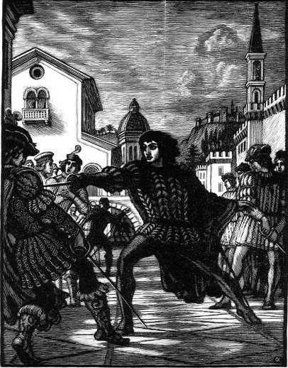 оружие, с помощью фра Лоренцо вышел из монастыря и в сопровождении верного Пьетро