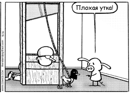 Одним из колоритных персонажей комиксов является боевой утёнок, по всей видимости,