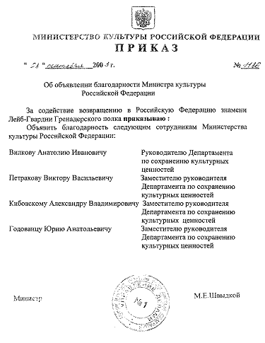 Гвардии, сохраняющим одну из святынь Русского Воинства, свою искреннюю признательность